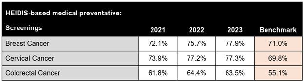 DVHT Screening Rates 2021 – 2023 vs. National Benchmark