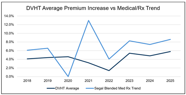 In creating an alternative to commercial carriers and the broker-driven health insurance market, DVHT members opt-out of the traditional insurance market and make a commitment to the other participating public entities in the pooling of risk thereby creating an alternative model for health benefits. This shared commitment fosters a sense of mutual purpose and creates opportunities for savings and improved member health and wellbeing.